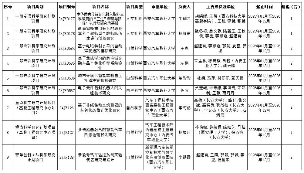 2025 年 2 月 14 日,陕西省教育厅正式发布《关于下达 2024 年度科学研究计划项目的通知》,我校牛璐芳、杨恒东、王燕、左娴、柴彩彩、任冰、李海鸽、杨鲁月、李银霞 9 位教师带领的科研团队申报的项目成功获批。