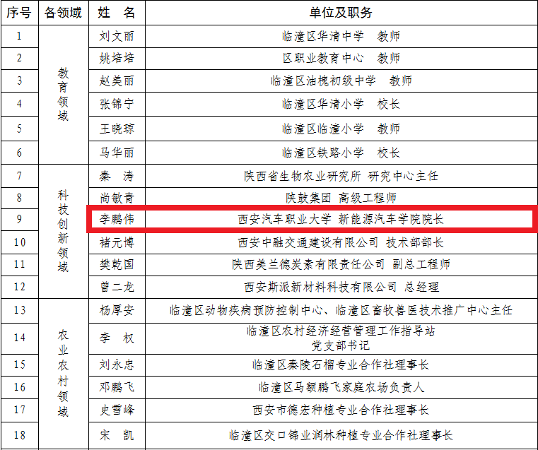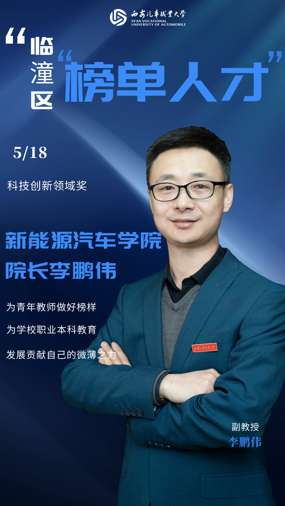发展是第一要务、人才是第一资源、创新是第一动力,5月17日,临潼区委人才办下发的《临潼区关于“榜单人才”评选活动的通知》,我校新能源汽车学院院长李鹏伟被评为科技创新领域奖“榜单人才”,并予以表彰。