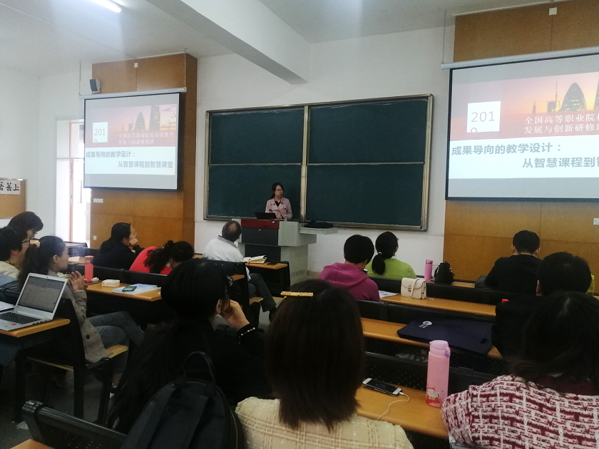 在汇报会开始,张校长发表了重要讲话。他首先高度肯定了学术汇报会这种形式,并希望文理学院能坚持办下去,努力将汇报会打造成学院一张靓丽的名片。结合职业本科教学,张校长希望全体老师要向实现“三个转变两个更新”努力,“三个转变”即要转变教学理念、转变教学方法和转变教学模式,“两个更新”即教学内容更新、教学(课程)标准更新。他希望老师们要积极探索职业本科教学新路径,不断加强自身教学科研能力,积极参与并努力打造出行业标准。